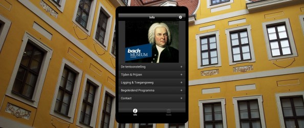 Bovenaan dit bericht een foto van het Bosehaus in Leipzig waar het Bachmuseum in gevestigd is. Op de voorgrond zie je een screenshot van de Nederlandstalige versie van de mobiele app van het museum.