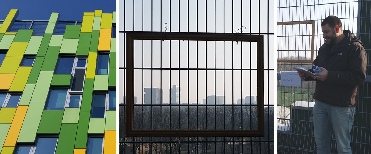 Na de wandeling door Kanaleneiland staken we de Beneluxlaan over, naar Transwijk. Daar wachtte Erik van Marissing de groep op voor wijkgebouw Nieuw Welgelegen voor het tweede deel van de tour. Hij nam ons mee het dak op en trok ons het leven van flatbewoners binnen met de vraag hoe lang we zelf wekelijks in de lift staan. Aan de randen van het dak zag je door houten lijsten de flats van de bewoners die hij voor zijn reportage Op grote hoogte ontmoette (duur: 37 min.).